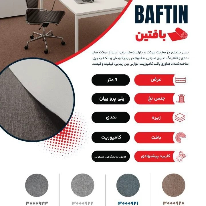 بافتین؛ موکتی مخصوص نمایشگاهها وقتی کیفیت، هزینه و ظاهر فضا مهم است، انتخاب فقط یک موکت است: بافتین. اولین موکت کامپوزیت در جهان ✅ نصب سریع و آسان ✅ سبک و مقاوم در برابر کوبیدگی ✅ رنگبندی شیک و حرفهای ✅ بهصرفه برای پروژههای کوتاهمدت موکتی که زیبایی و کارایی را برای نمایشگاه ها، کامل میکند 🔴 بافتین | Baftin 🔴 با بافتین کیفیت را به قیمت بافتیم میان قیمت اقتصادی موکت نمدی و استحکام موکت تافتینگ، بافتین متولد شد. ✅️ موکتی با بافت کامپوزیت و زیره نمدی سرشار از دوام و زیبایی. ✅️ مقاوم در برابر کوبش، لکپذیری و گذر زمان — انتخابی ایدهآل برای فضاهای نمایشگاهی. بافتین، دسته بندی جدیدی در صنعت موکت. ⬅️ چهار رنگ اصلی به همراه دو رنگ سفارشی ویژه ⬅️ مقاومت عالی در برابر کوبش و فشار ⬅️ دوام بالا در فضاهای پرتردد ⬅️ انتخابی مناسب برای محیطهای نمایشگاهی. بافتین؛ نقطه توازن بین کیفیت، قیمت دوام و زیبایی.